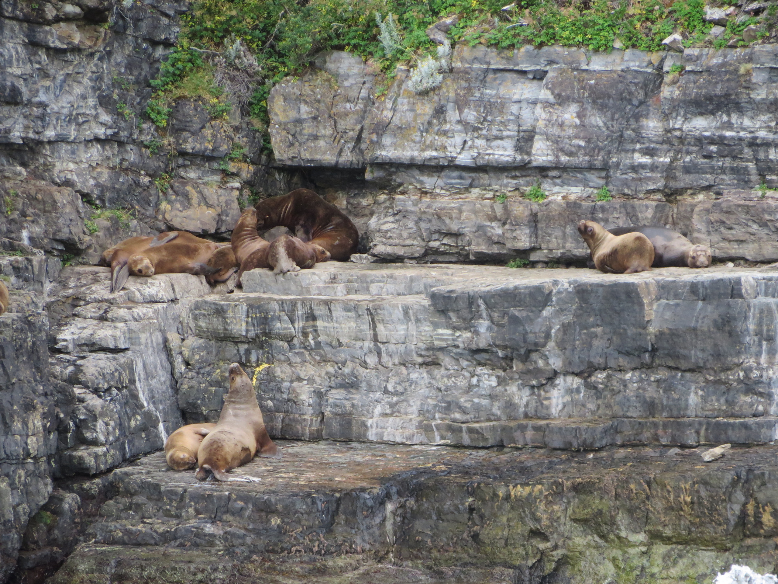 Quarenta minutos depois, mais um exemplo da fauna local: uma pequena colônia de lobos marinhos…