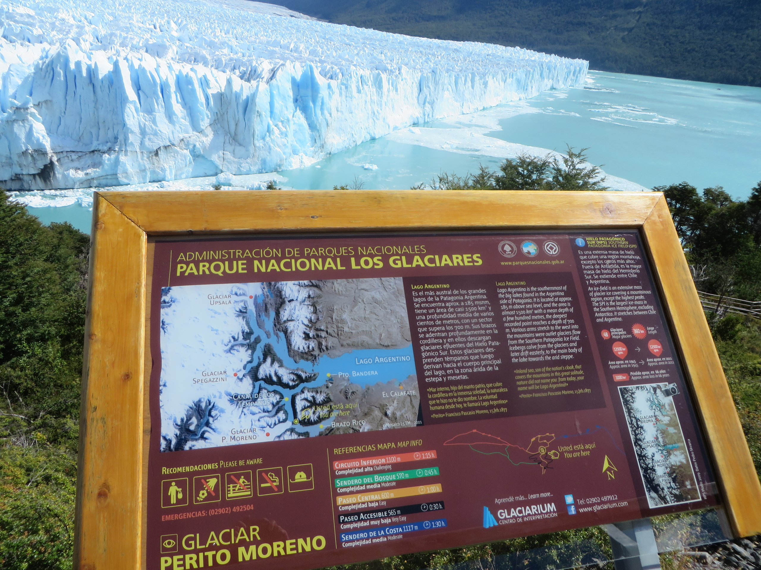 O ônibus, então, nos deixou na área dos Miradores e Passarelas, muito bem estruturada e sinalizada. Existem vários circuitos e rotas, depende do gosto e tempo do freguês … De lá pudemos admirar o imponente Perito Moreno sob outras perspectivas, igualmente mágicas, assim como seus icebergs mais avantajados.