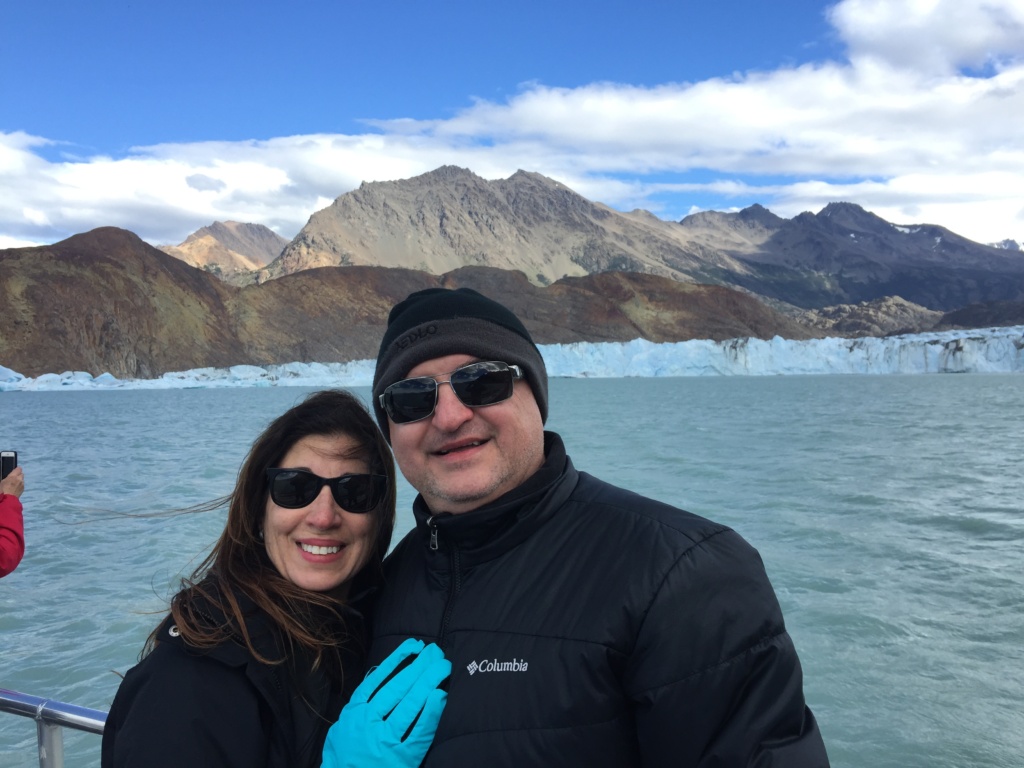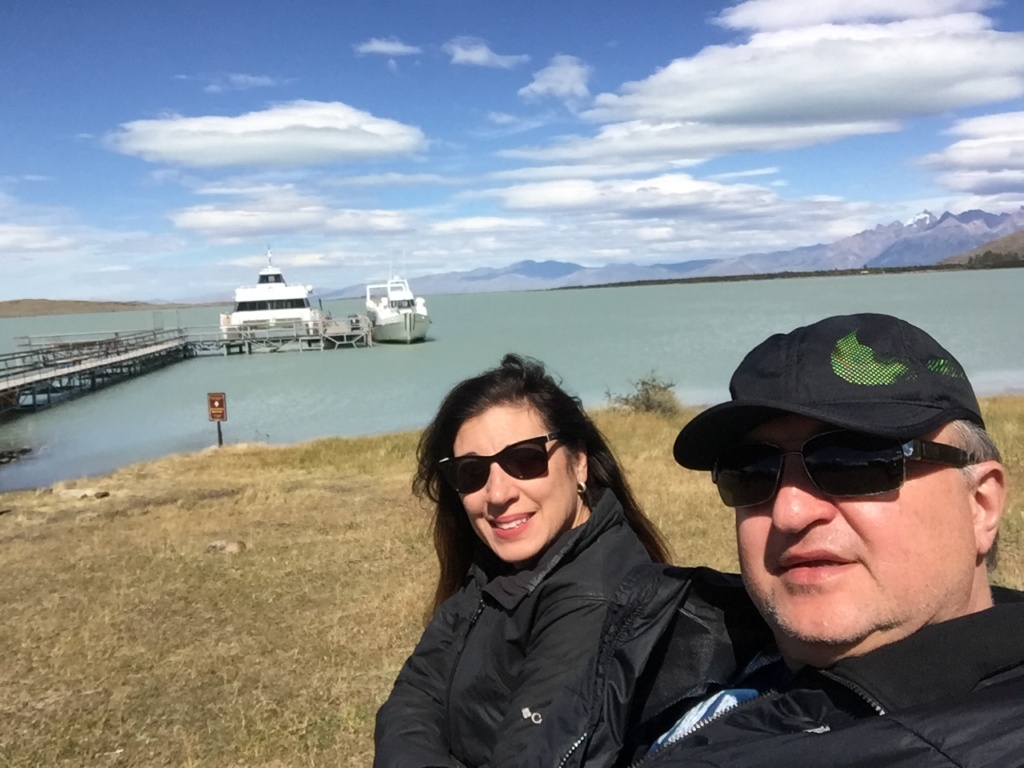 Novamente um passeio em um barco. Mais frio e vento e lá fomos nós na parte de cima do barco contemplando os lindos icebergs azuis e o lago. Não precisamos dizer que estávamos “babando”, pois foi a primeira vez que vimos um iceberg de tão pertinho. Infelizmente as fotos não conseguem reproduzir a beleza que nossos olhos veem. Durante o passeio pudemos também observar as formações dos Cerros Torre e Huemul.