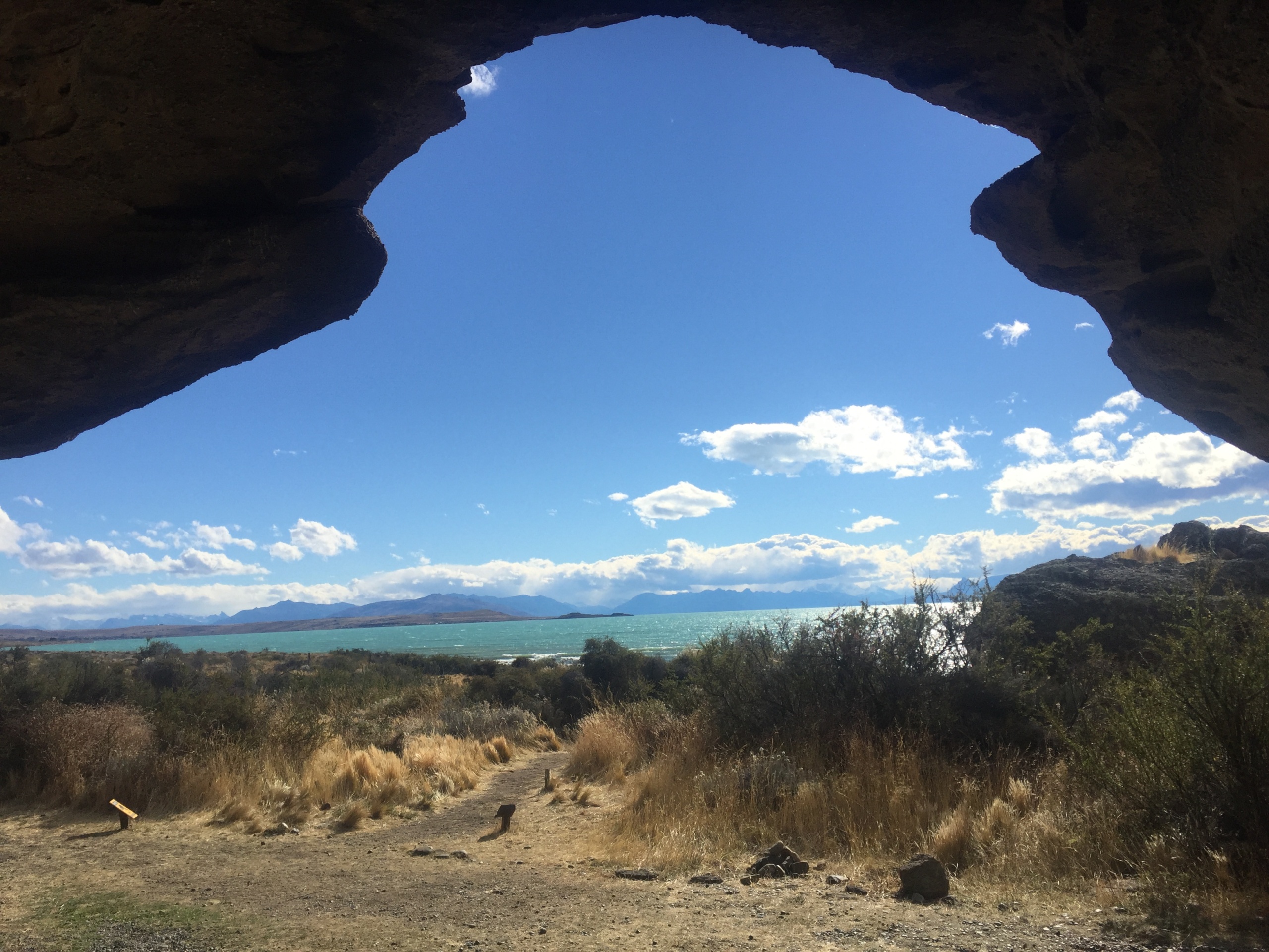 No final da tarde fomos conhecer um sítio arqueológico, o “Cuevas de Walicho”, que fica no Cerro Walicho, às margens do Lago Argentino.