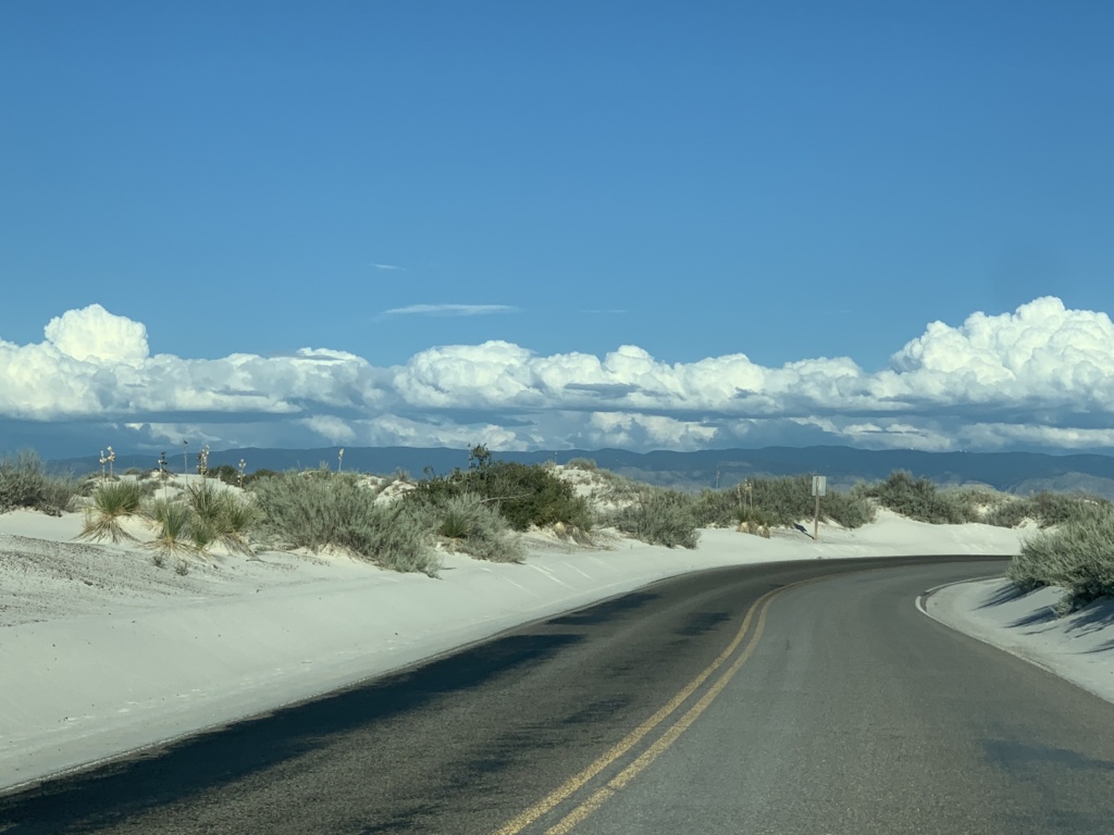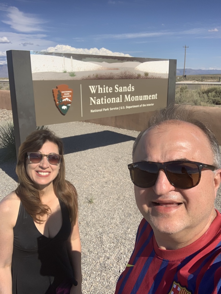 Neste trecho da viagem, percorremos o sul do Novo México, andando por um grande trecho paralelamente à fronteira com o México. Quando estávamos próximos ao parque, tivemos que parar para checagem num “Border Control” (Controle de Fronteira), mesmo não estando cruzando a fronteira. Isso acontece para combater a imigração ilegal, que é muito comum por ali. É uma espécie de blitz imigratória …