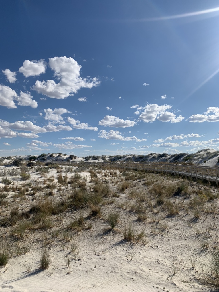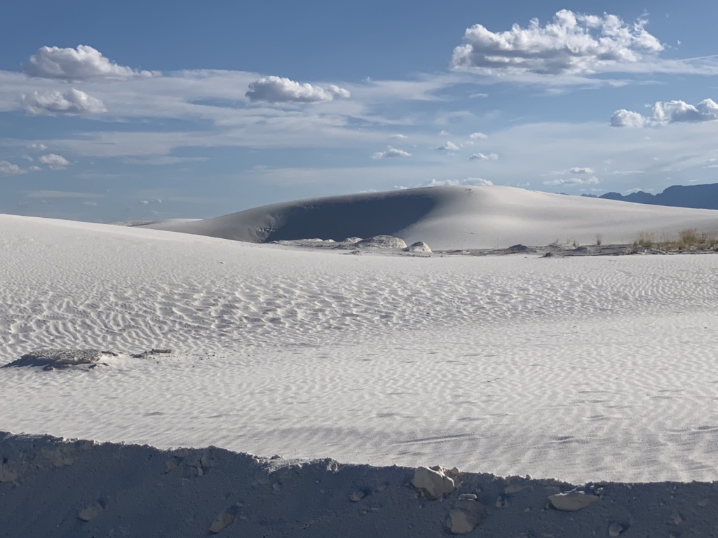 Essas belíssimas dunas, que faz a gente pensar estar numa praia do Nordeste brasileiro, são formadas de gipsita, que parece um tipo de areia, bem consistente e muito branquinha.