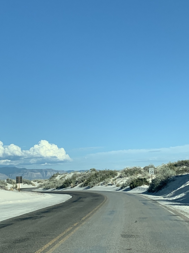 Logo após essa trilha, a estrada deixa de ser asfaltada, passando a ser pavimentada com a própria gipsita que forma as dunas. A partir desse ponto as dunas começam a ficar mais próximas e maiores, e o espetáculo é grandioso …